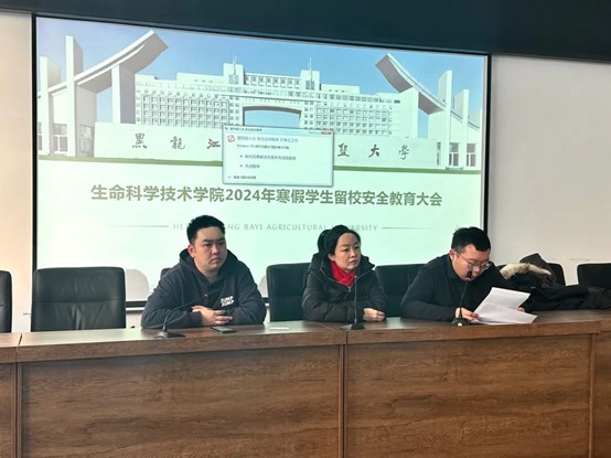 为提高寒假留校学生的安全意识,切实保障2024年寒假留校工作有序开展,按照学校寒假学生安全工作相关通知要求,1月8日中午,365英国上市官网在基础实验楼130面向寒假留校本科生、研究生开展安全教育大会,团委书记白巍、研究生辅导员胡东旭、本科生辅导员暴天阳及一百余名寒假留校学生参会,会议由胡东旭主持。