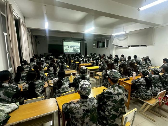 为强化新生国防教育、弘扬爱国主义精神,9月11日,在公司2025级新生军训期间,全体参训学生于第二教学楼集体观看了中国人民抗日战争暨世界反法西斯战争胜利80周年阅兵式实况录像。