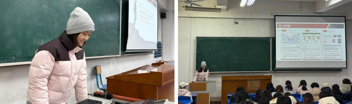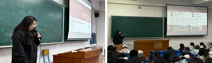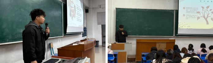 第三个进行分享的是徐蓓蓓,生物学专业2023级硕士研究生。曾获2023年研究生学业奖学金,通过CET 4,于SCI 4区发表论文一篇,影响因子为2.5。积极参加国内外各类学术活动、学术会议,并在2025年全国绿色生物制造产学研合作研讨会中荣获“优秀墙报”。她寄语学弟学妹:要以德立身、勤勉治学、勇于科研创新,同时保持积极心态,在挫折中成长,合理规划时间,在研究生阶段实现全面发展。